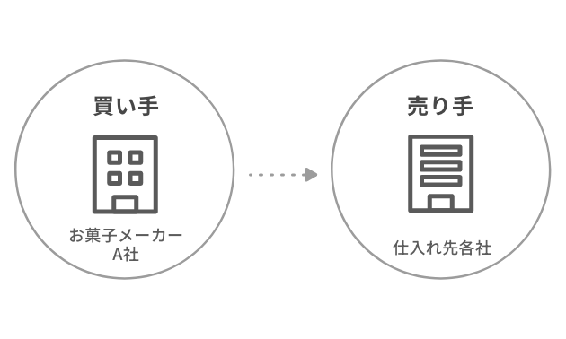 お菓子メーカーA社(買い手企業)は仕入れ先各社(売り手企業)への支払いが一括管理できる他、仕入れ先の資金調達を支援できます。